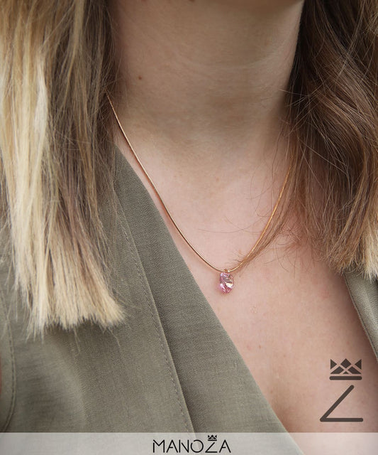 Collier Cœur Rose en Cristal (Plaqué OR)