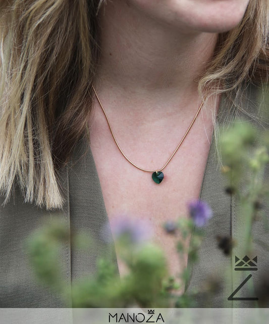 Collier Cœur Vert en Cristal (Plaqué OR)