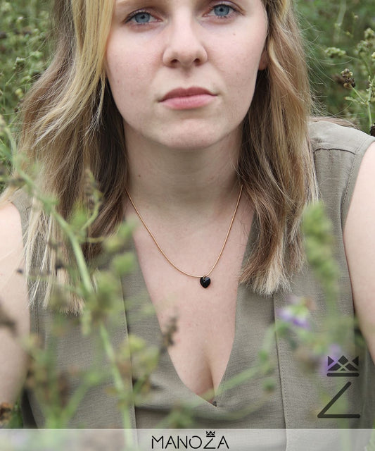 Collier Cœur Noir en Cristal (Plaqué OR)