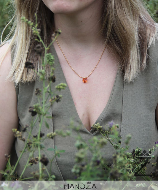 Collier Cœur Orange en Cristal (Plaqué OR)