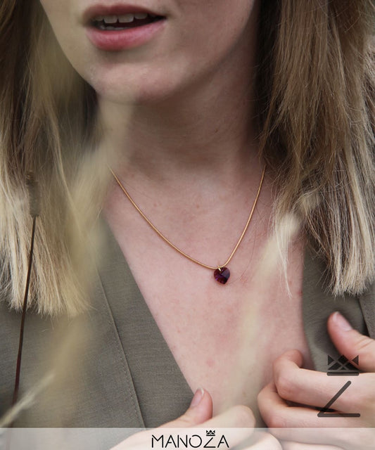 Collier Cœur Violet en Cristal (Plaqué OR)